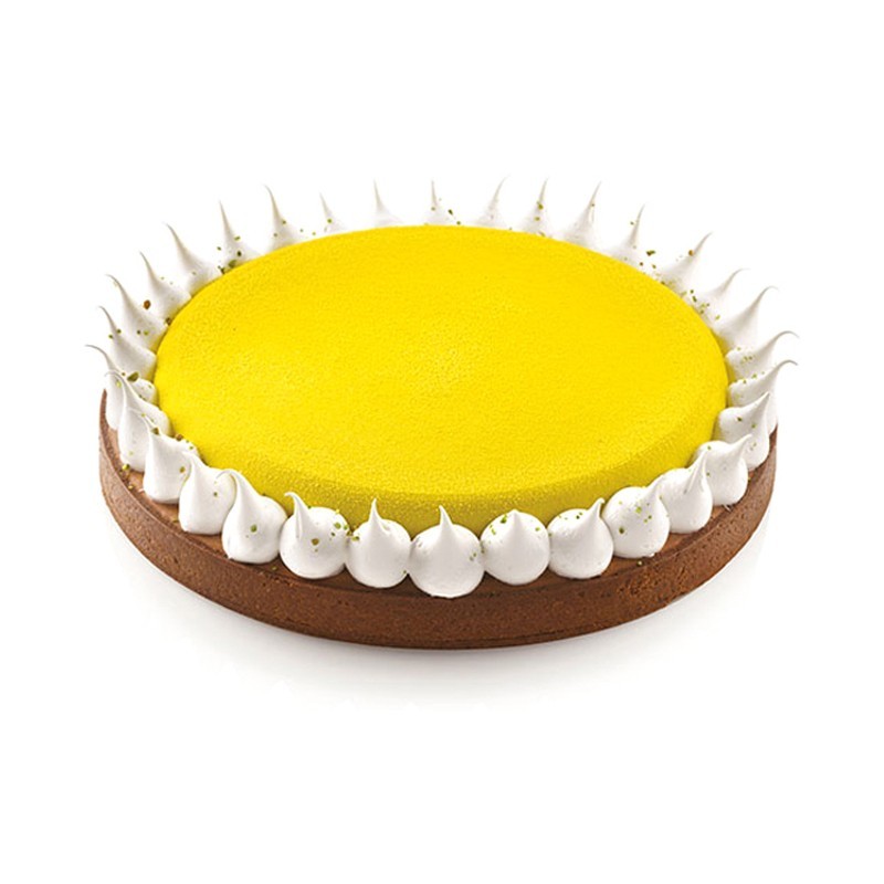 La tarte traditionnelle se pare d'une nouvelle robe grâce au Kit Tarte Rond Ø 230 mm de Silikomart Professional. Le kit est composé de deux éléments : un anneau de 230 mm de diamètre en matériau composite thermoplastique indéformable adapté à la cuisson et à la réalisation du fond et un moule en silicone de 190 mm de diamètre pour réaliser une mousse ou une crème à déposer sur la pâte sablée Pâtisserie. L'anneau est antiadhésif et inoxydable, il permet une cuisson homogène et il se caractérise par une grande stabilité thermique. La tarte créée avec le Kit Tarte Anneau Rond Ø 230 mm s'affirme comme un persistant dont la modernité classique vous laissera agréablement surpris