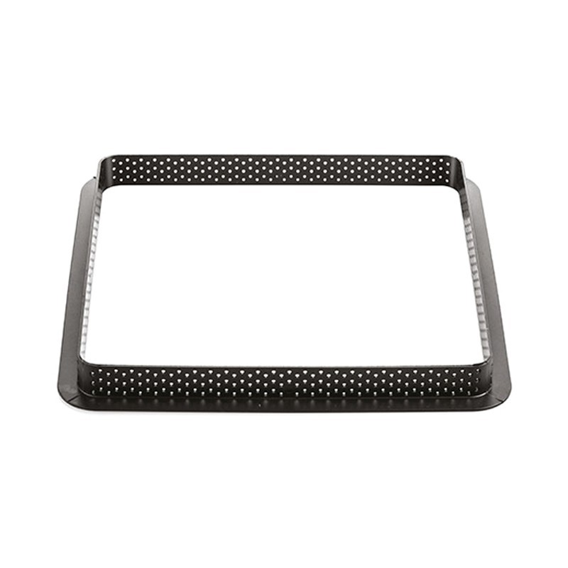 La tarte traditionnelle se pare d'une nouvelle robe grâce au Kit Tarte Ring Square de Silikomart Professional. Le kit est composé de deux éléments : un carré de 200 x 200 h 20 mm en matériau composite thermoplastique indéformable adapté à la cuisson et à la réalisation de la base et un moule en silicone de 170 x 170 h 20 mm pour réaliser une mousse ou une crème à étaler sur la pâte brisée. Le carré est antiadhésif et inoxydable, il permet une cuisson homogène et il se caractérise par une grande stabilité thermique. La tarte créée avec le Kit Tarte Ring Square s'affirme comme un persistant dont la modernité classique vous laissera agréablement surpris.