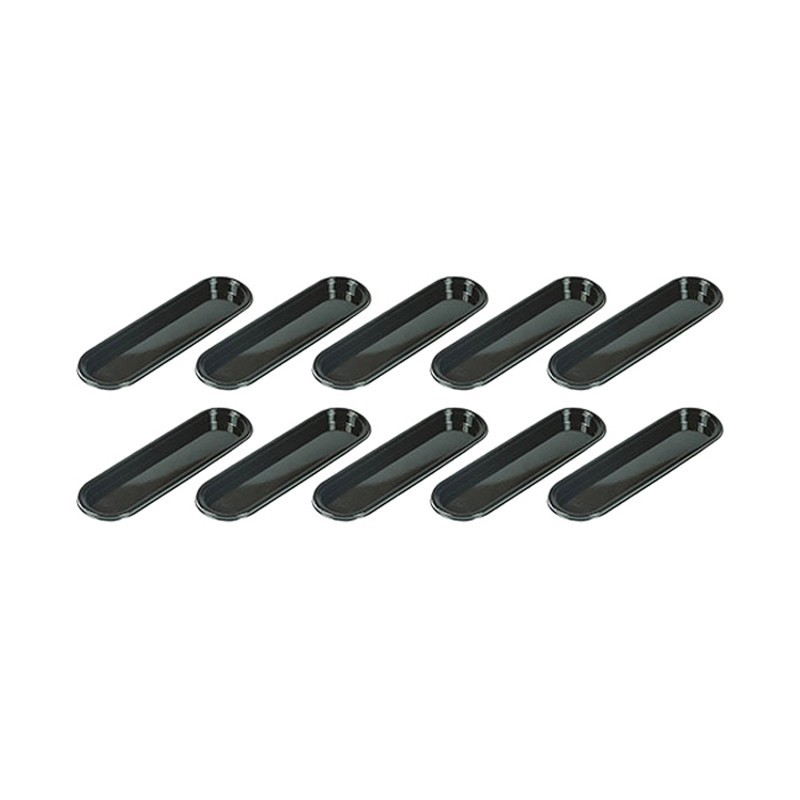 La tarte traditionnelle se pare d'une nouvelle robe grâce au Kit Tarte Ring Oblong 146x34 mm de Silikomart Professional. Le kit est composé de deux éléments : six anneaux 146x34 h20 mm en matériau composite thermoplastique indéformable adapté à la cuisson et à la création de la base et un moule en silicone composé de 6 cavités de 133 x 21 h 12 mm chacune pour réaliser une mousse ou une crème déposer sur la pâte brisée. Les anneaux sont antiadhésifs et inoxydables, ils permettent une cuisson homogène et ils se caractérisent par une grande stabilité thermique. La tarte créée avec le Kit Tarte Anneau Oblong 146x34 mm s'affirme comme un persistant dont la modernité classique vous laissera agréablement surpris.