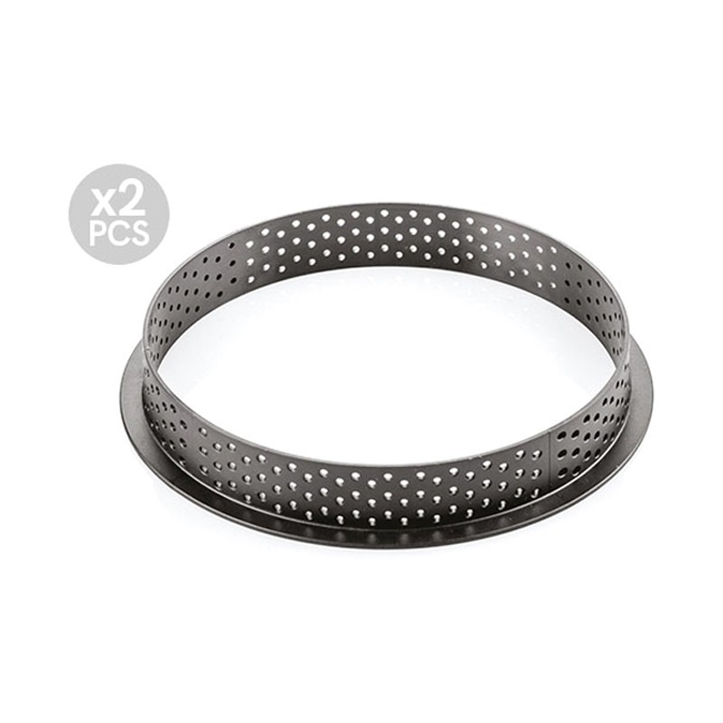 Cercle Tarte Rond Ø 120 h 20 mm de Silikomart Professional est composé de quatre cercles de 120 mm de diamètre chacun en matériau composite thermoplastique indéformable adapté à la cuisson et qui ont été développés pour réaliser une tarte de 120 mm de diamètre. Les anneaux sont antiadhésifs et inoxydables, permettent une cuisson homogène et possèdent une grande stabilité thermique, réalisant une tarte traditionnellement impeccable.