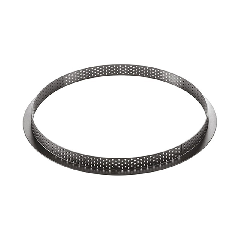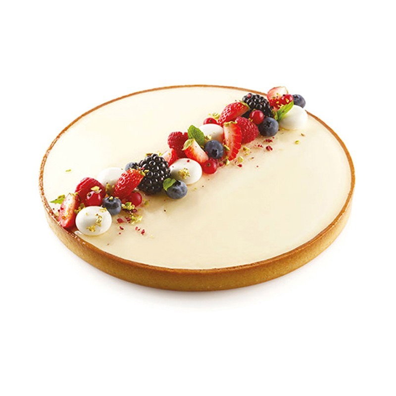 Cercle Tarte Rond Ø 230 h 20 mm de Silikomart Professional est le cercle de 230 mm de diamètre en matériau composite thermoplastique indéformable adapté à la cuisson et qui a été développé pour réaliser une tarte de 220 mm de diamètre. L'anneau est antiadhésif et inoxydable, permet une cuisson homogène et se caractérise par une grande stabilité thermique, réalisant une tarte traditionnellement impeccable.