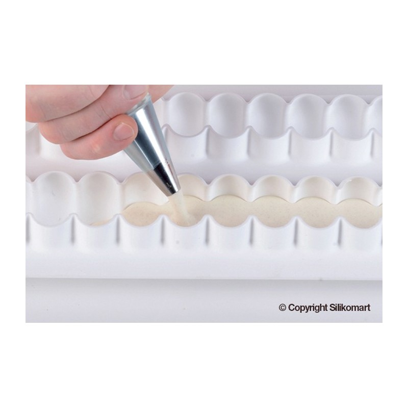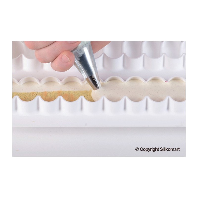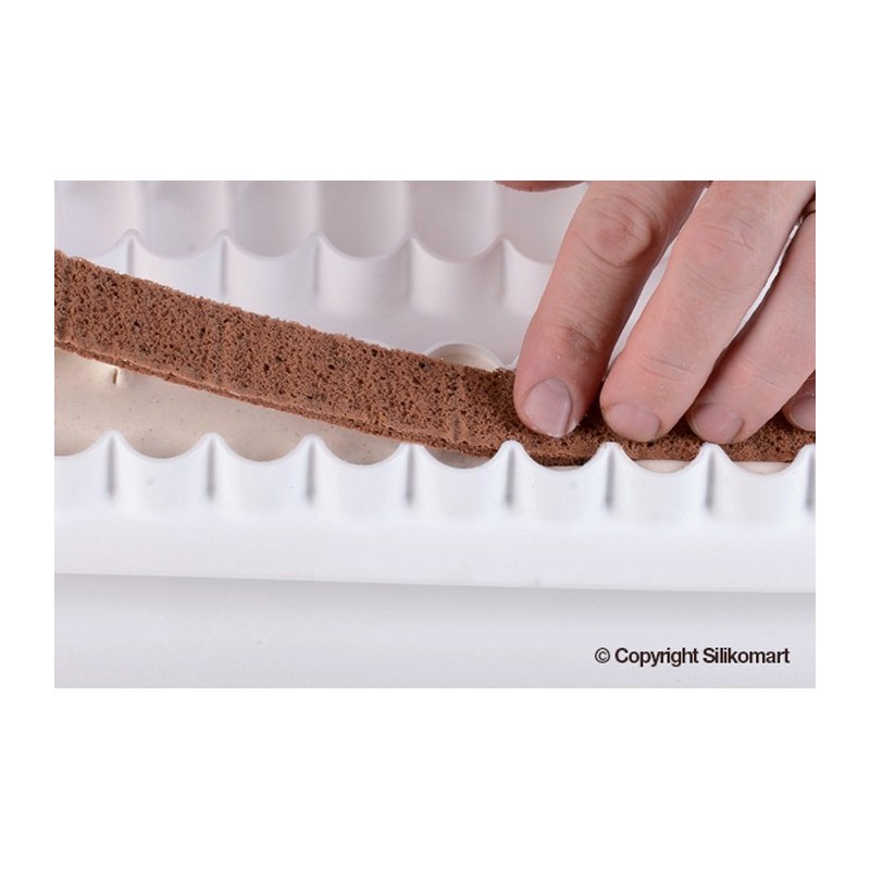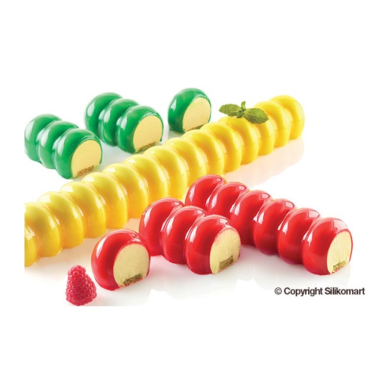 Conçu par les designers de Silikomart pour répondre à la fois aux nécessités d'optimisation et d'esthétique de la vitrine, avec INFINITY, une nouvelle forme mais aussi un nouveau concept de production en laboratoire entrent dans le monde des glaces et de la pâtisserie. INFINITY permet en effet de réaliser en une seule opération rapide 4 bûches qui peuvent être combinés entre eux ou bien être sectionnés en portions plus petites ou même en monoportions, de façon que les artisans du goût puissent réaliser des créations satisfaisant leurs exigences aussi en ce qui concerne les tailles.