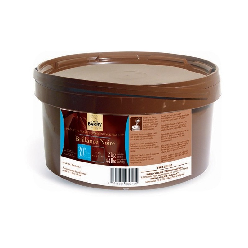 Ingrédients : chocolat 39% (sucre, pâte de cacao, cacao maigre en poudre, matière grasse laitière anhydre, beurre de cacao, émulsifiant : lécithine de soja, vanille naturelle), sucre, eau, dextrose, humectant : E422, sirop de glucose, conservateur : E200. Peut contenir des fruits à coque et du gluten
