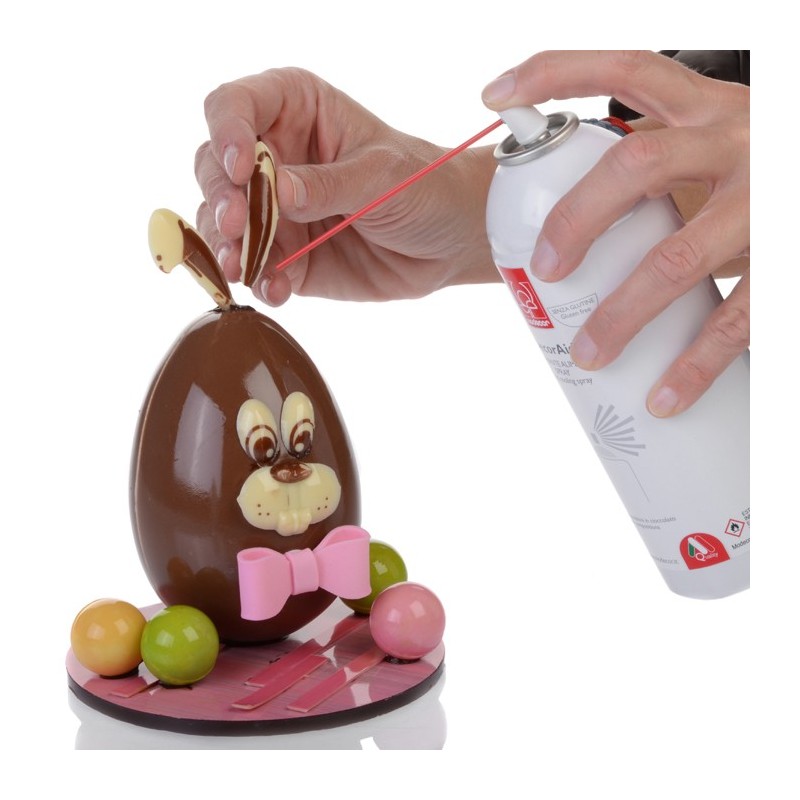 Ce spray convient pour le refroidissement instantané de produits à base de sucre ou de chocolat. Il vous permettra d'assembler vos décorations ou moulages en chocolat. Contient un spray à gaz et la tige de pulvérisation.