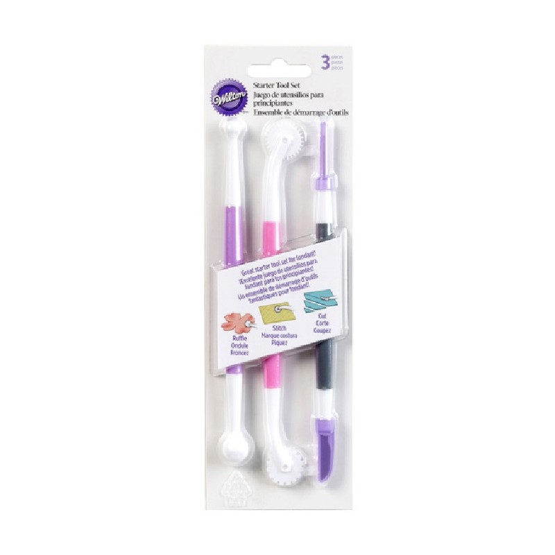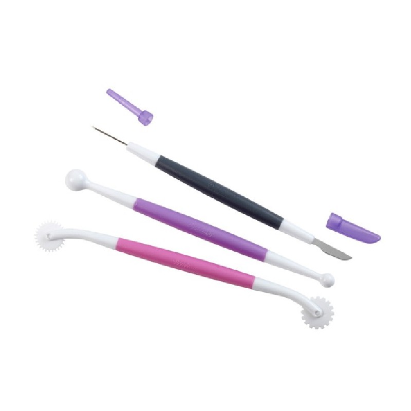 Ce jeu de trois ébauchoirs à double tête Wilton rend le travail de la pâte à sucre et de la gum paste encore plus facile. Ce set contient un outil "boule", un outil "quilting" pour un effet piqûre et un outil "couteau/aiguille".