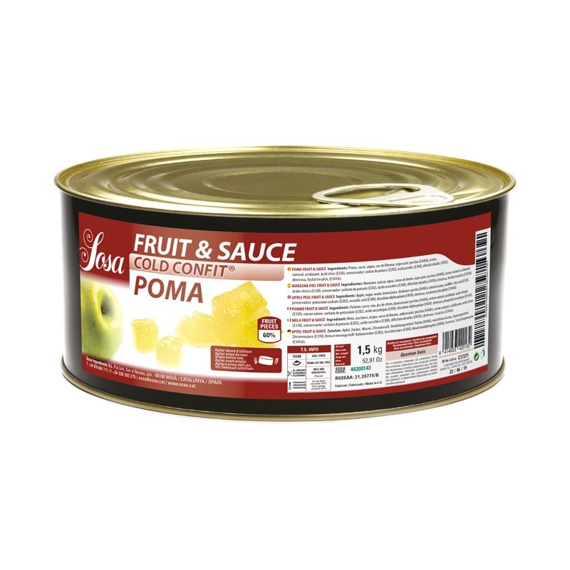 Fruits semi-confits, conservés dans un sirop de fruits. Ingrédients: Sucre, fraise, eau, pulpe de fraise, glucose, jus de citron, acidifiant : acide citrique (E330), épaississant : pectine (E440ii), conservateur : sorbate de potassium (E202), disodium diphosphate (E450i), dextrose, phosphate tricalcique (E341iii).