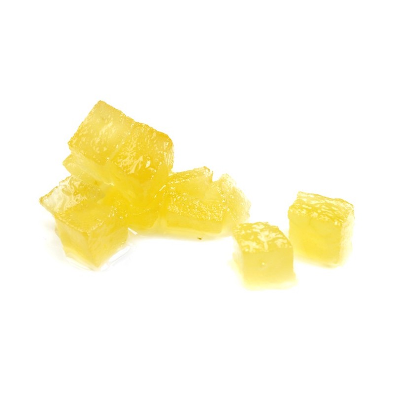 Ces fruits confits sont une invitation à la gourmandise. Les fraises ont été traitées selon un procédé de confisage innovant, sous pression et à basse température. Elles sont conservées dans leur sirop. L'arôme des fruits est préservé et concentré pour une utilisation privilégiée dans des mousses, glaces ou gâteaux.
