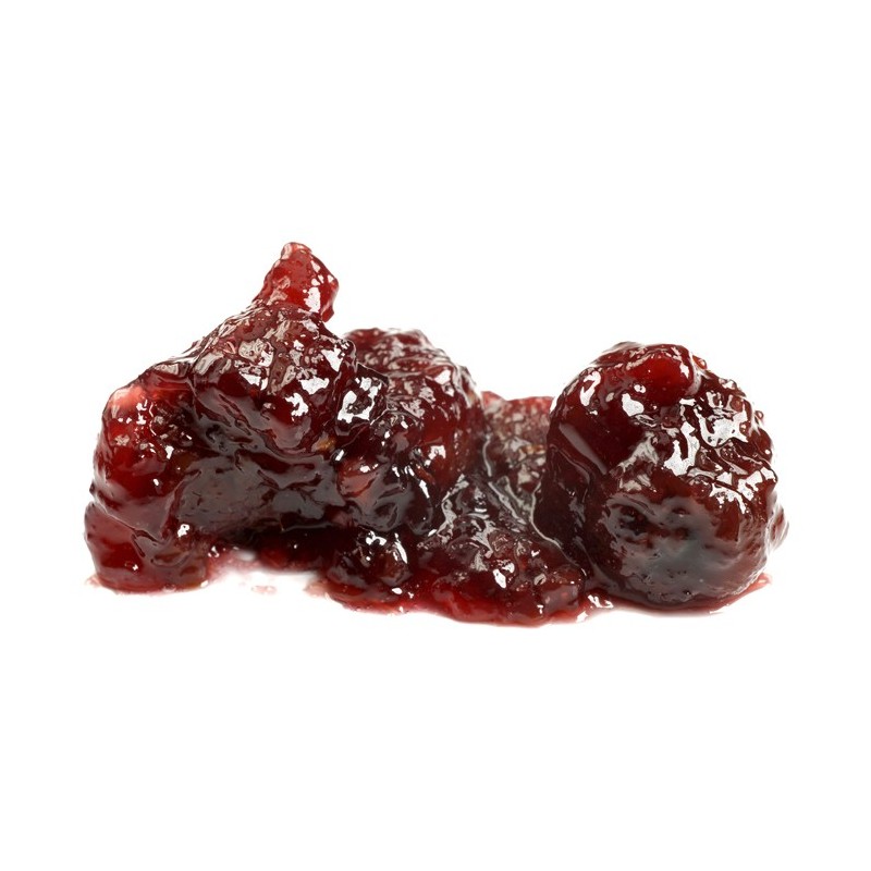 Dés de framboise 1,5x1,5cm confite en sauce, technique COLD CONFIT®.