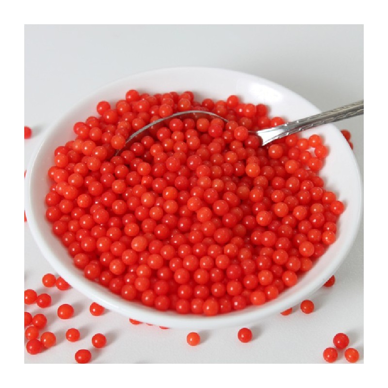 Les perles de sucre comestibles FunCakes de couleur rouge brillant ont un diamètre de 4mm. Ces perles de sucre permettent de façonner de nombreux éléments décoratifs, tels que le coe?ur d'une fleur ou le bord d'un gâteau.