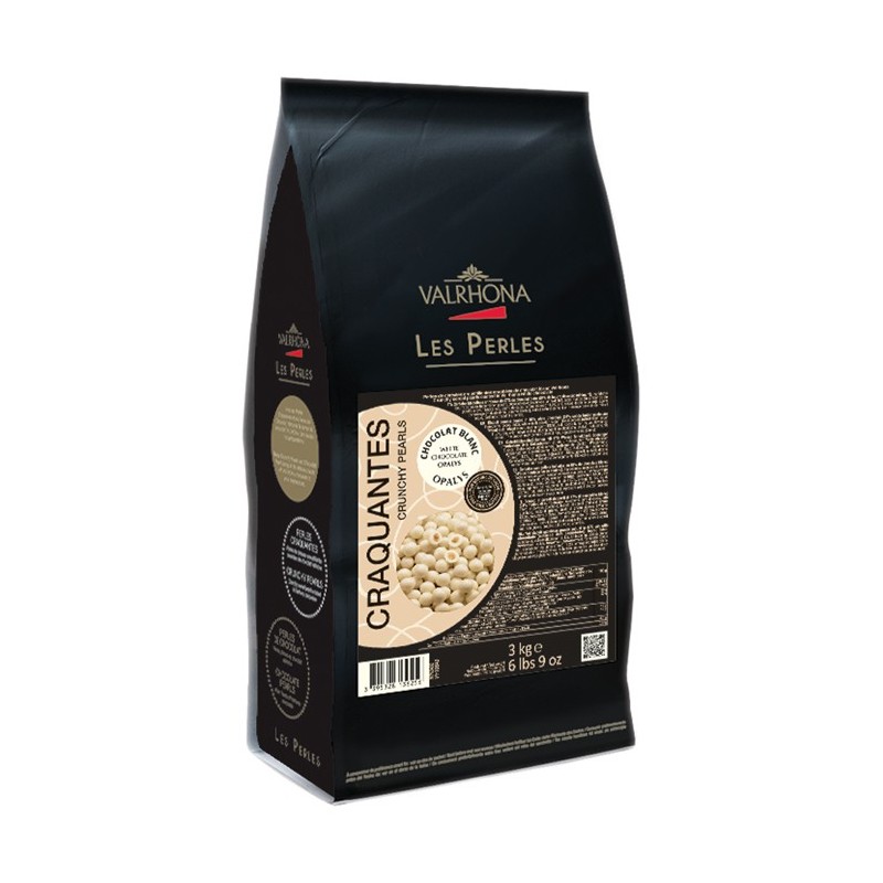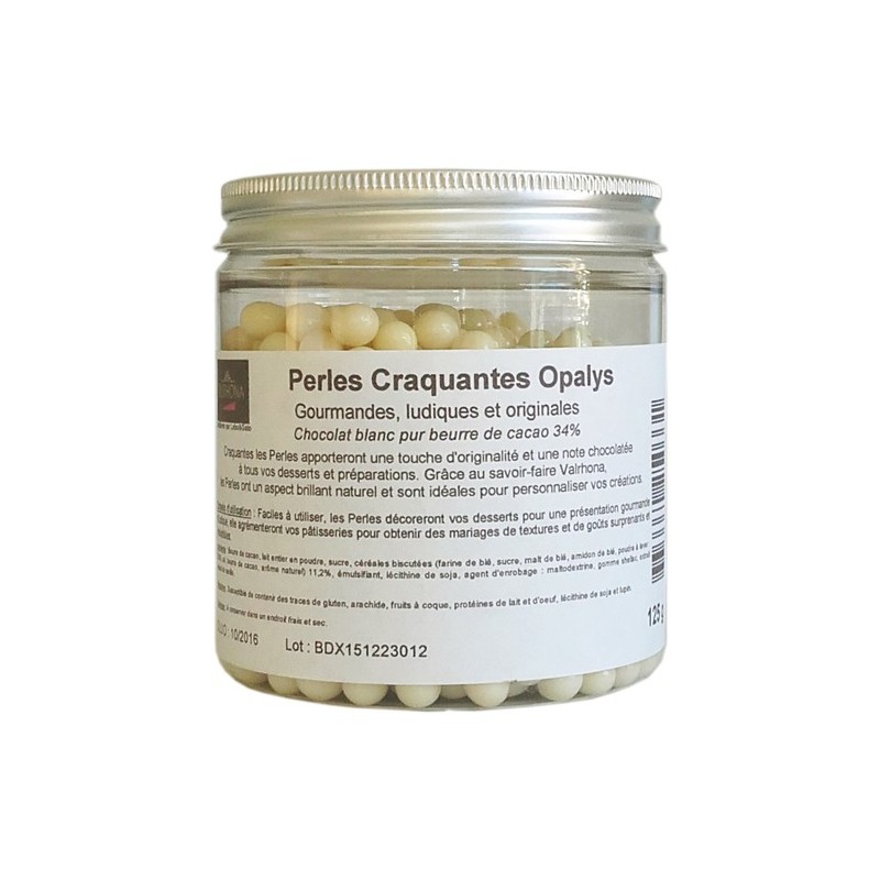 Ces Perles sont composées d'un cœur de céréales croustillantes sublimé par Opalys, un chocolat blanc Valrhona très peu sucré, au bon goût de lait frais et de vanille naturelle.