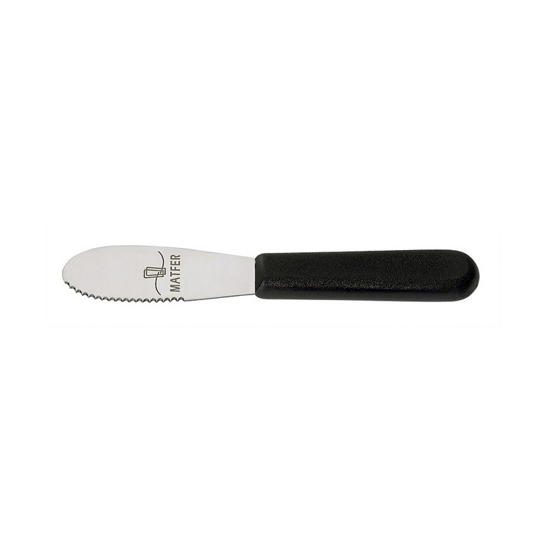 Lame ovale en acier inoxydable, crantée d’un côté pour ouvrir la baguette et souple de l’autre pour étaler plus facilement le beurre.