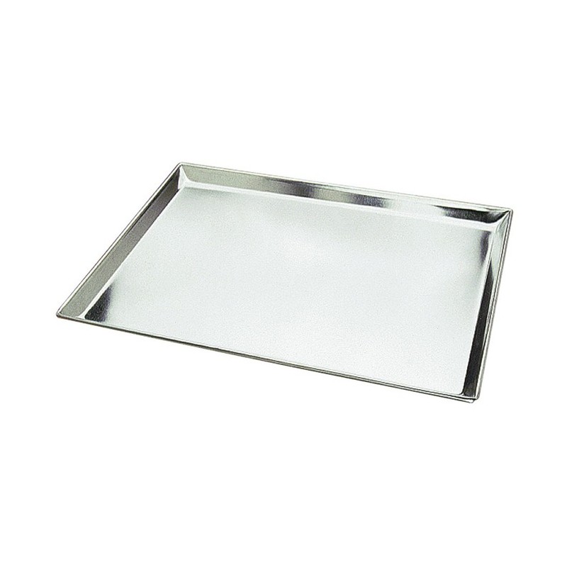 Plaque pour pâte roulée en fer blanc, emboutie et bordée sur fil.