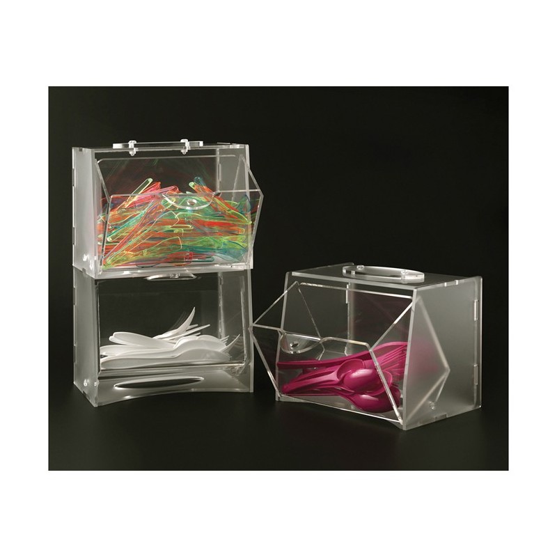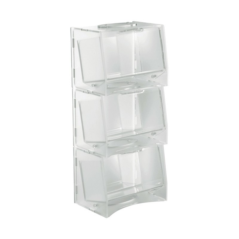 Idéal pour organiser un libre service à disposition des clients, ce set de 3 conteneurs transparents empilables et modulables, avec ouverture frontale par poignée, peut également être utilisé pour optimiser un plan de travail visible de la clientèle.