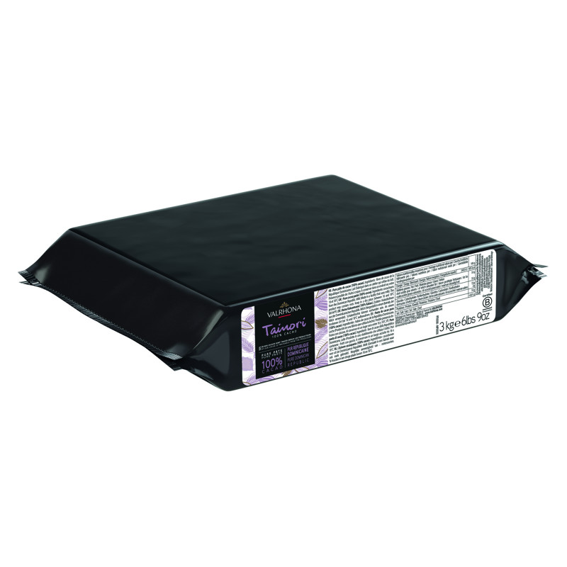Blocs (3 x 1 kg) pure pâte de cacao Valrhona Taïnori 100% de cacao, Grand Cru République Dominicaine.