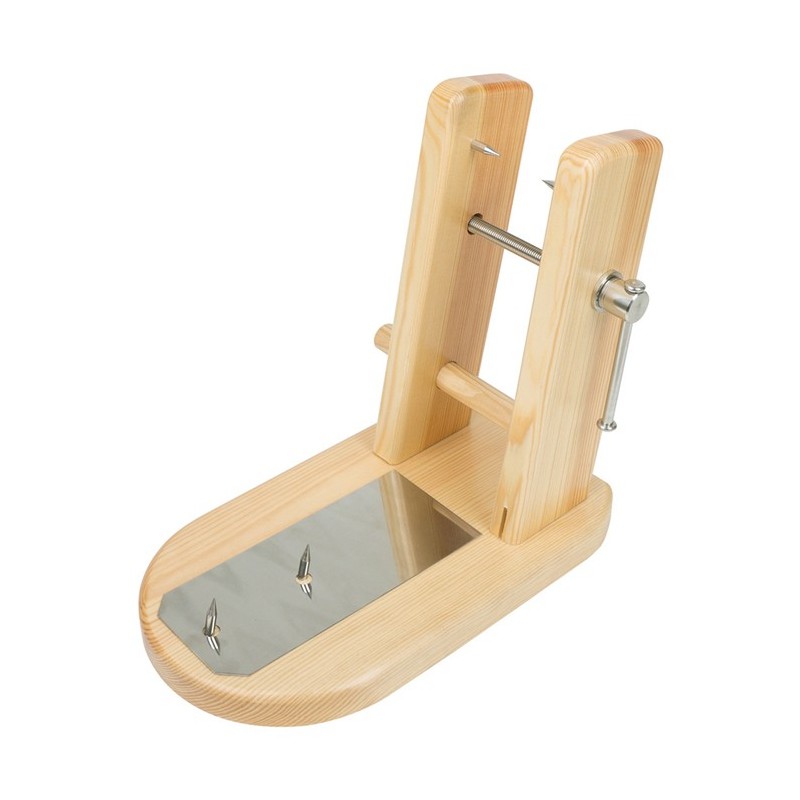 Pour la coupe des jambons avec pied et os. Fabrication robuste en pin naturel.