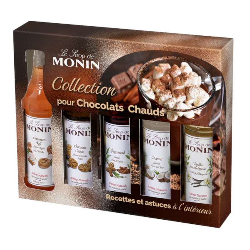 Transformez votre chocolat chaud maison en une expérience gourmande et réconfortante grâce au coffret de sirops MONIN réunissant cinq saveurs délicieuses.