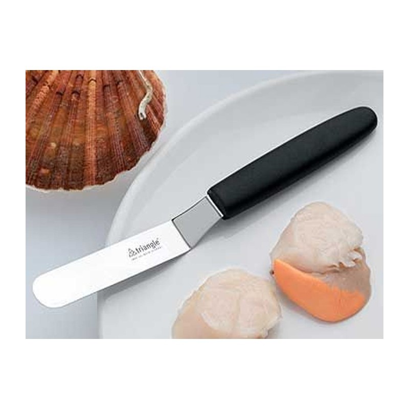 Cette spatule inox coudée 9 cm est idéale en pâtisserie pour manipuler des pièces délicates.