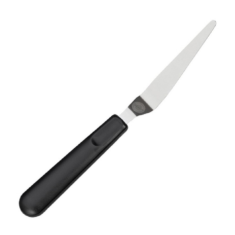 Spatule à prise confortable à lame oblongue conique. Avec sa poignée ergonomique et sa lame en acier inoxydable, elle vous assure un meilleur contrôle du glaçage ou de la crème.