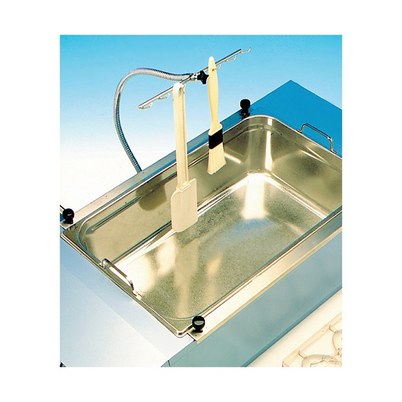 Spécialement étudié pour être utilisé avec les trempeuses à chocolat grâce à son socle inox plat qui se glisse sous l'appareil.